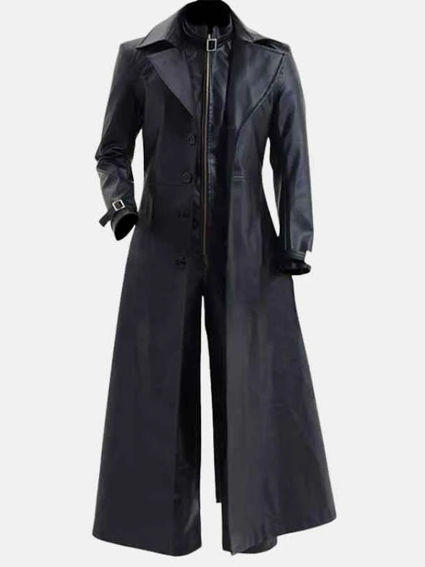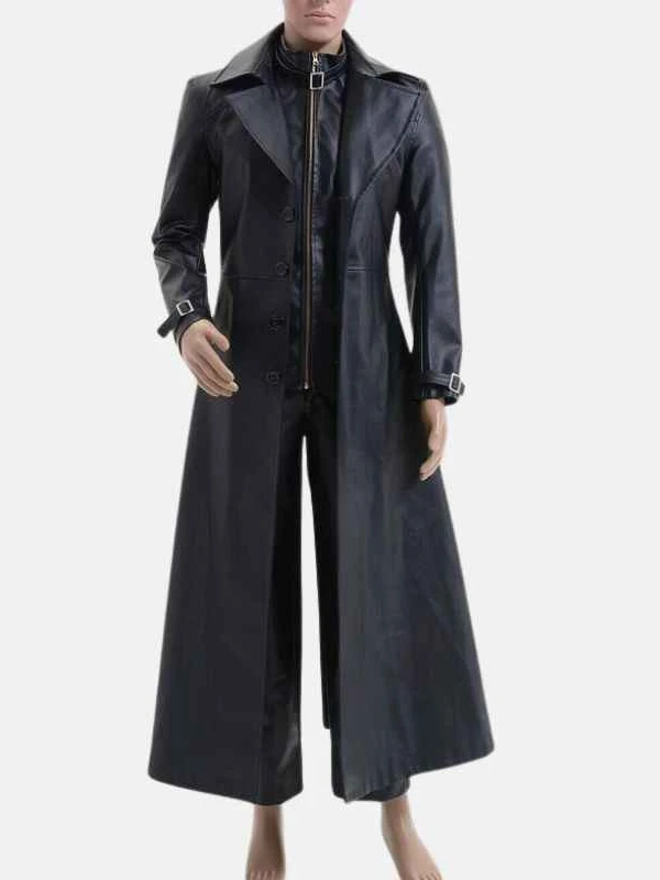 Men Albert Evil 5 Black Leather Trench Coat