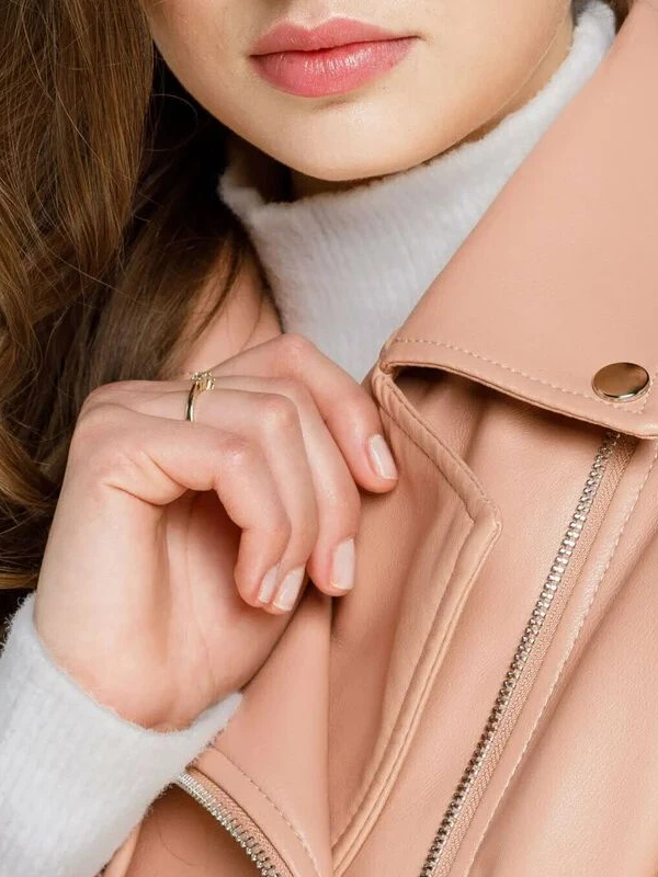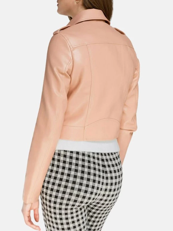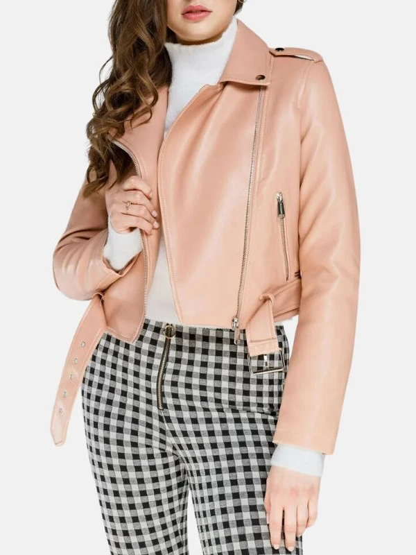 Light Pink Leather Jacket For Womens